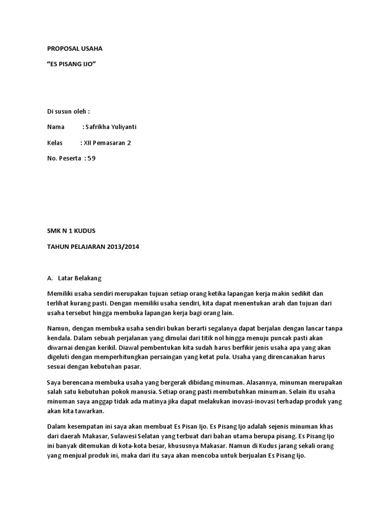 Contoh Proposal Usaha Es Pisang Ijo - Berbagi Contoh Proposal