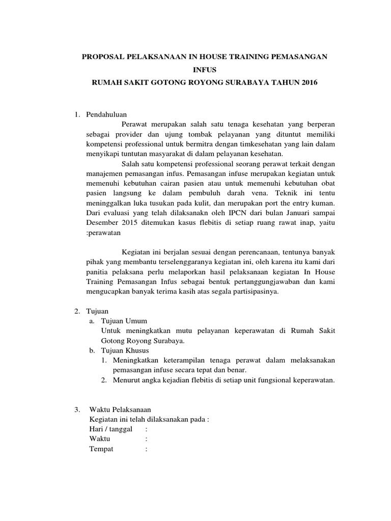 Proposal Pelaksanaan in House Training Pemasangan Infus