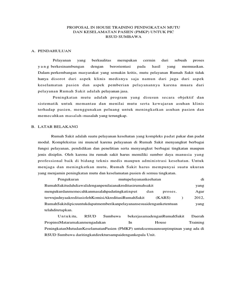 DOC) PROPOSAL IN HOUSE TRAINING triase.docx | Desy Isnaini - Academia.edu