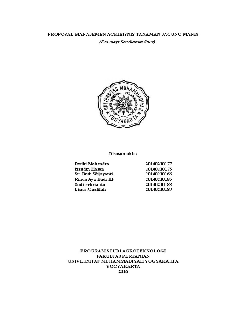 PROPOSAL USAHA. Budidaya tanaman jagung (Zea mays) Seluas 1 Ha PROPOSAL BUDIDAYA TANAMAN JAGUNG. Disusun Oleh : Sunjaya Somantri - PDF Free Download