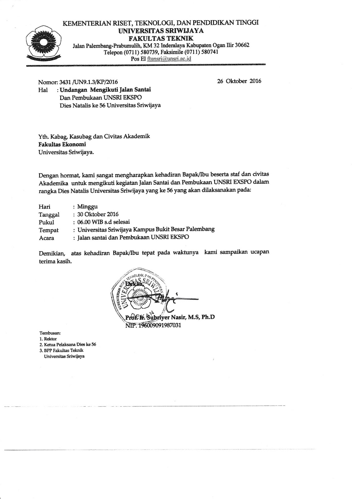 Undangan Jalan Santai dan Pembukaan UNSRI EKSPO Dies Natalis ke-56 …
