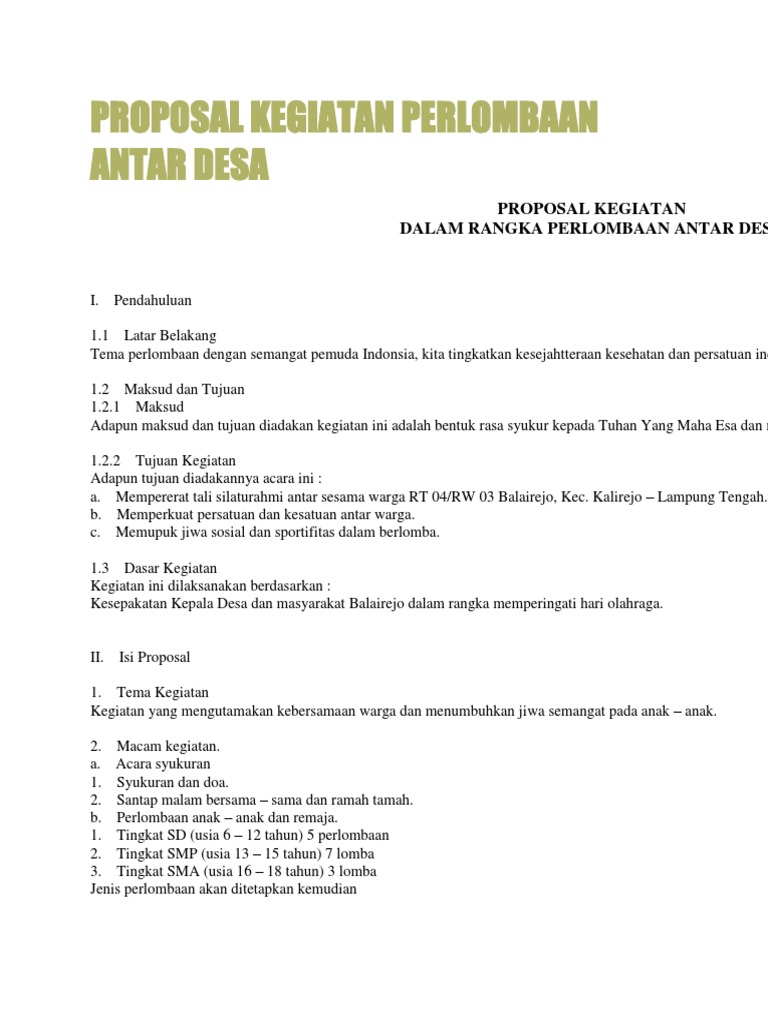 Proposal Kegiatan Perlombaan Antar Desa