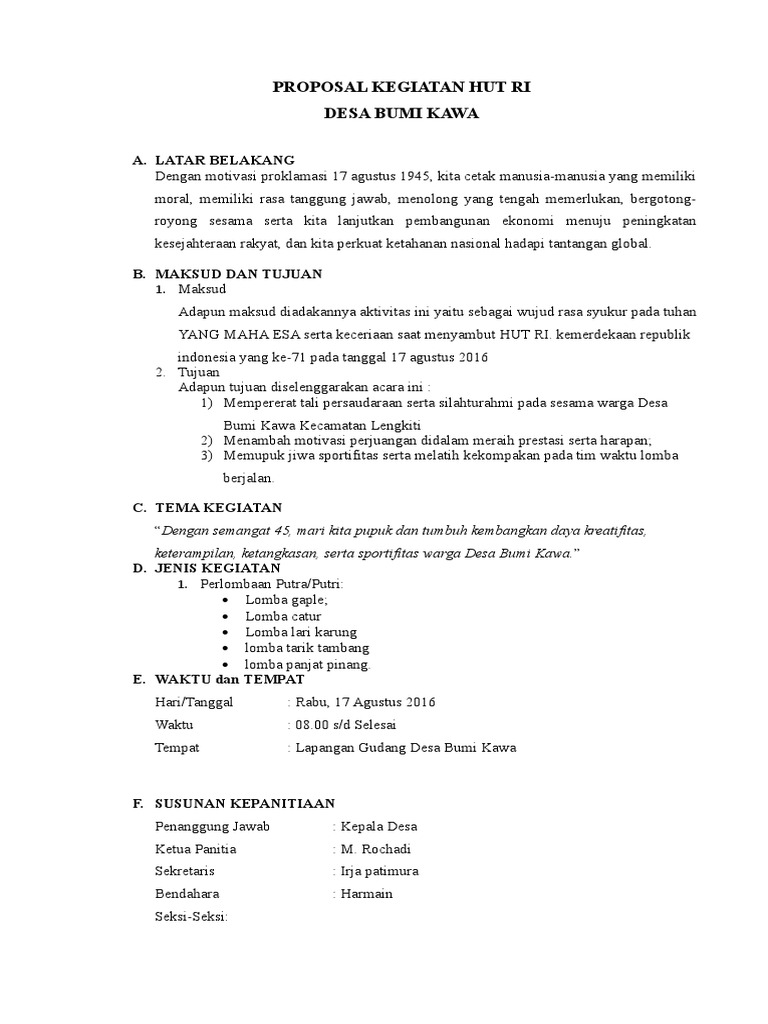 Contoh Proposal Kegiatan Hut Ri Di Desa - Nusagates