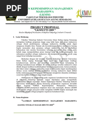 Contoh-Proposal-Kegiatan.pdf - LATIHAN KEPEMIMPINAN MANAJEMEN MAHASISWA(LKMM FAKULTAS TEKNOLOGI INDUSTRI UNIVERSITAS ISLAM SULTAN AGUNG SEMARANG | Course Hero