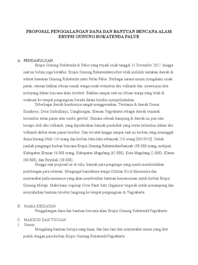 CONTOH PROPOSAL PENGGALANGAN DANA DAN BANTUAN BENCANA ALAM ERUPSI MERAPI YOGYAKARTA | pmi sidrap - Academia.edu