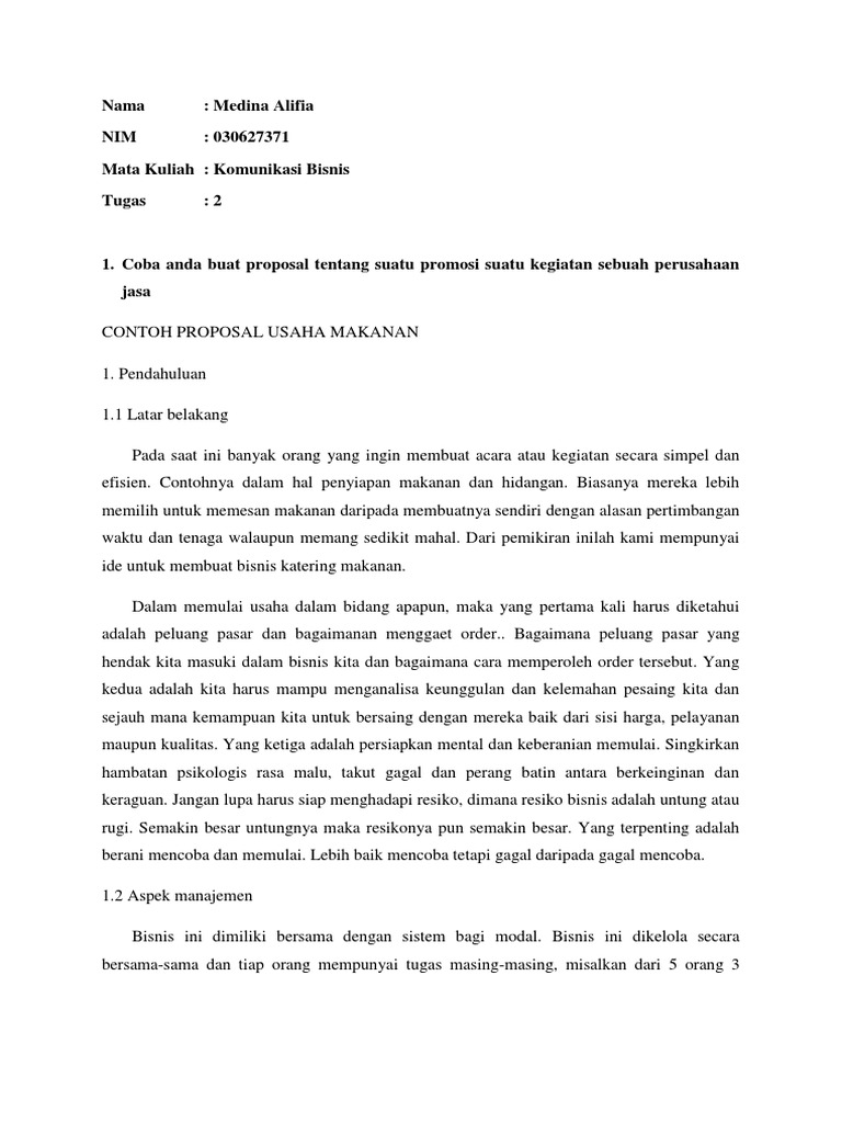 DOC) TUGAS KOMUNIKASI BISNIS KELAS E “PROPOSAL BISNIS” | Sitta Dewi - Academia.edu