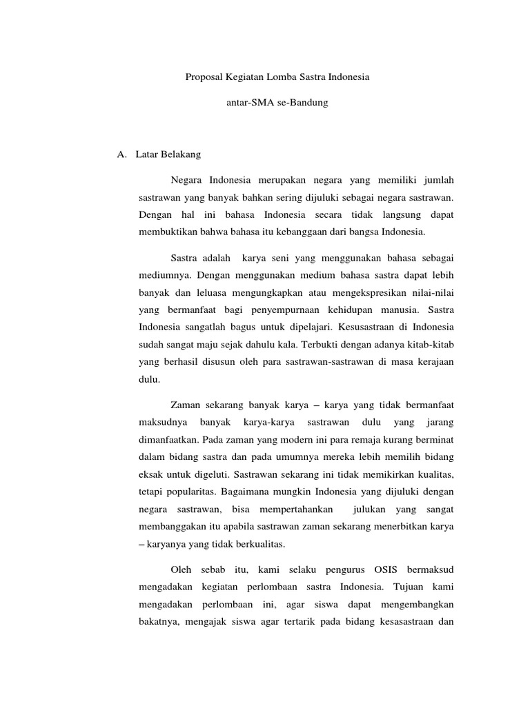 Proposal Kegiatan Lomba Sastra Indonesia