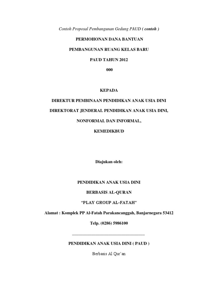 DOC) CONTOH PROPOSAL RINTISAN PAUD BARU 2016 | Miftah (Mix) - Academia.edu