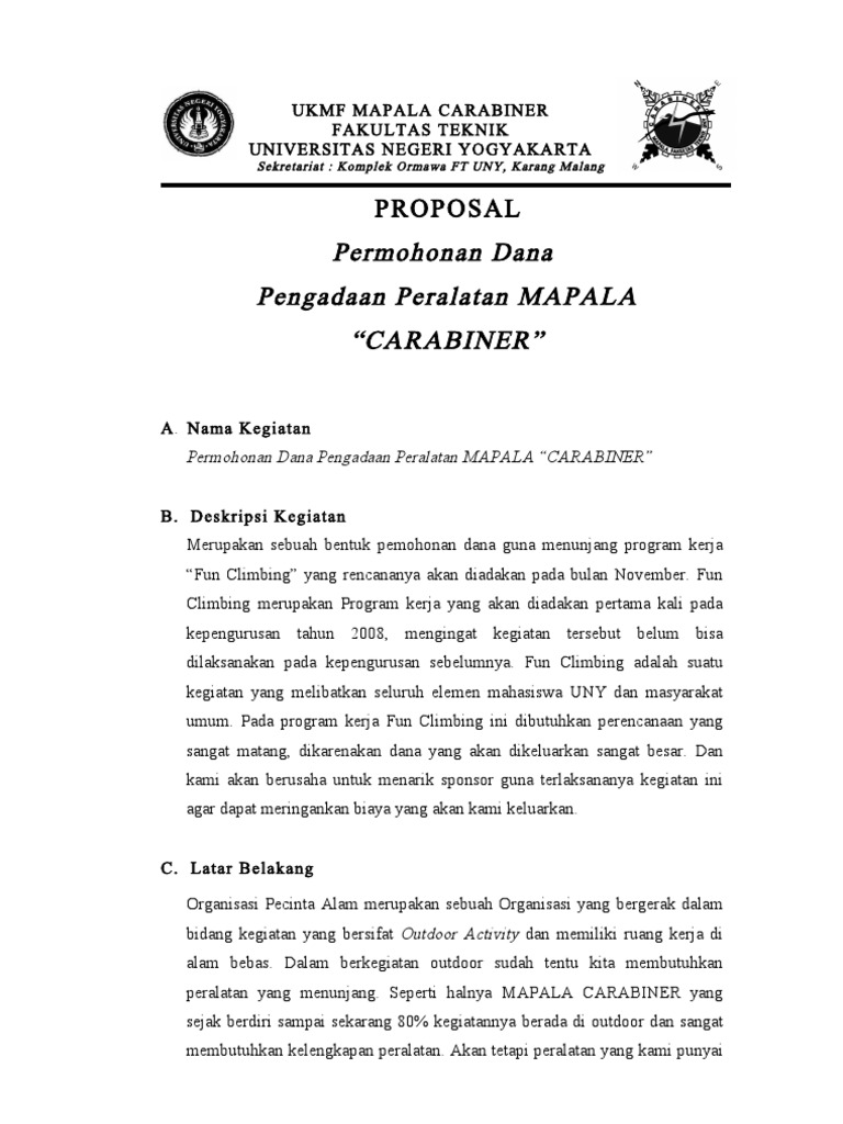 CONTOH PROPOSAL KEGIATAN PENDAKI GUNUNG: CONTOH PENULISAN PROPOSAL KEGIATAN