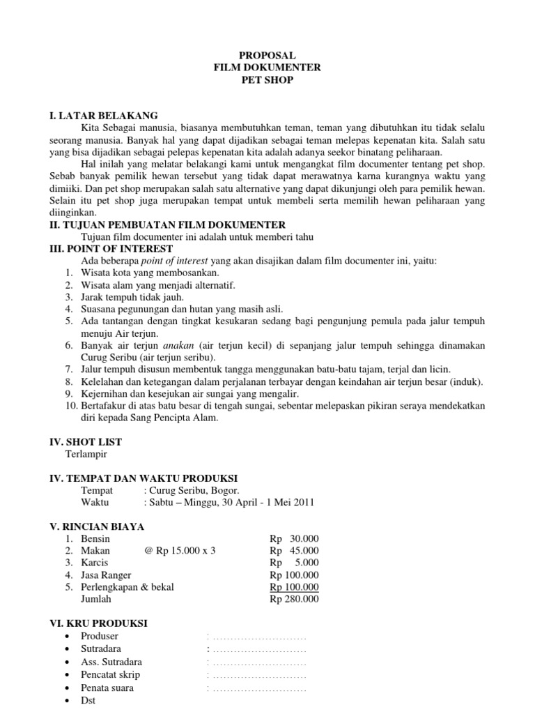DOC) PROPOSAL FILM DOKUMENTER PET SHOP | Cholizh Nr - Academia.edu