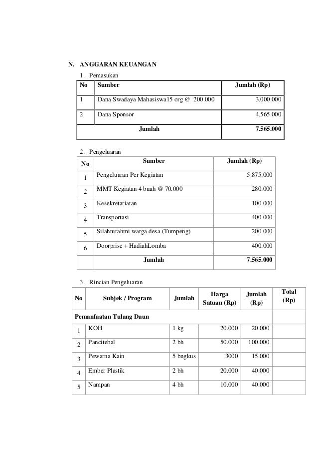 Contoh Pengajuan Proposal Biaya Kegiatan Kkn - [DOCX Document]
