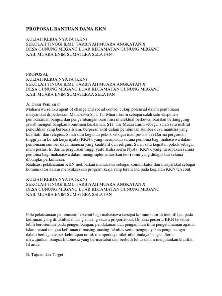 Contoh Proposal Pengajuan Dana Kegiatan Kkn Pdf - Berbagi Contoh Proposal