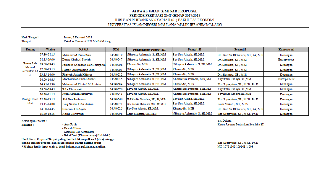 Perbankan Syariah UIN Malang: JADWAL SEMINAR PROPOSAL GENAP 2017-2018 FEBRUARI