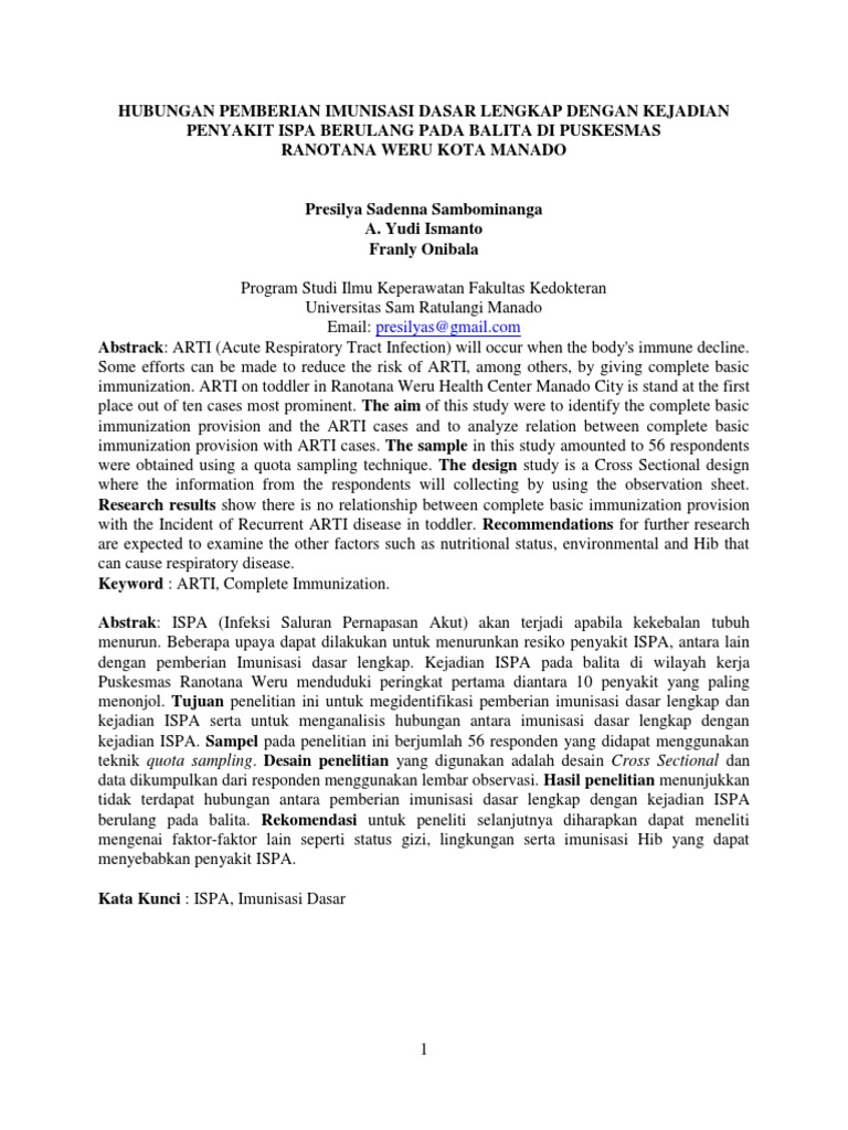 Jurnal Penelitian Hubungan Pemberian Imunisasi Dasar Lengkap Dengan Kejadian Penyakit ISPA Pada Balita