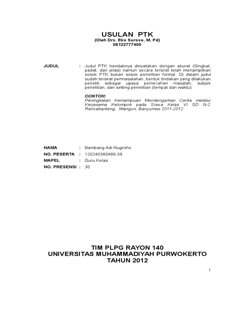 Contoh Proposal PTK - [DOC Document]