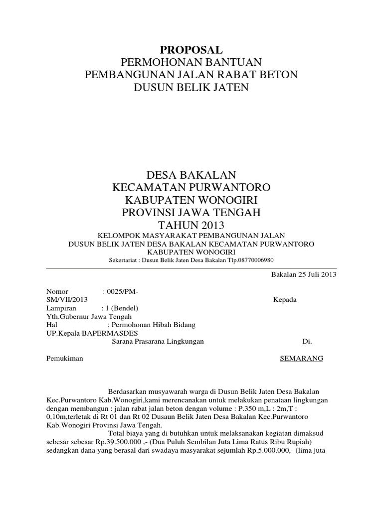 Contoh Proposal Rabat Beton Jalan Desa - Berbagi Contoh Proposal