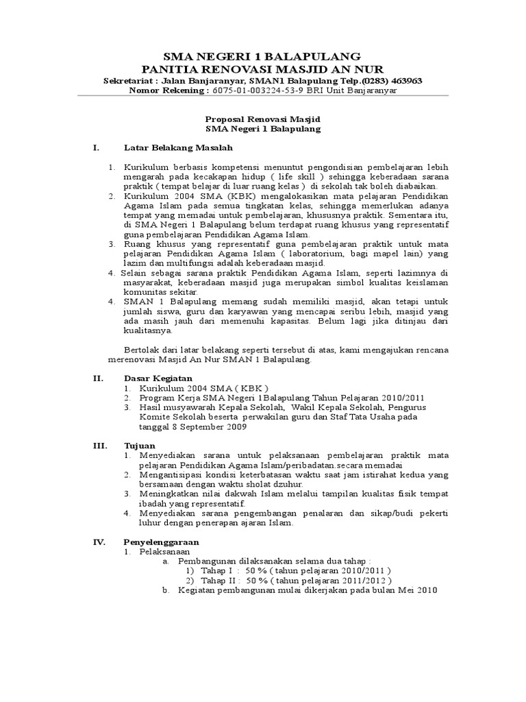 Contoh Proposal Rehab Masjid - Guru Ilmu Sosial
