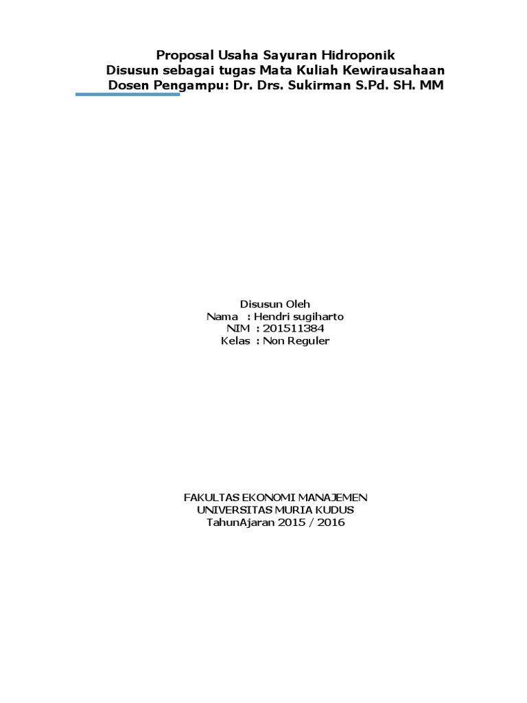 Proposal Kewirausahaan Usaha Hidroponik [ylyxkoewqznm]