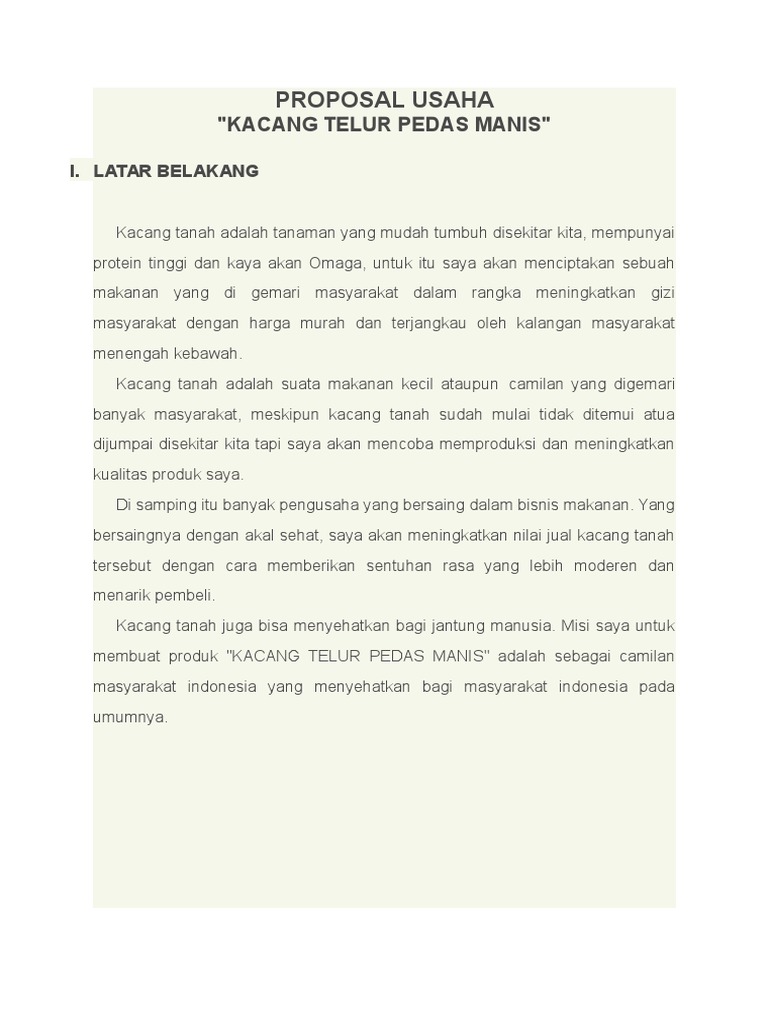 Proposal Usaha: Proposal usaha kacang telur pedas manis