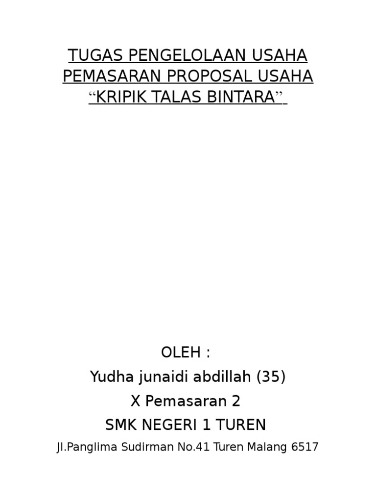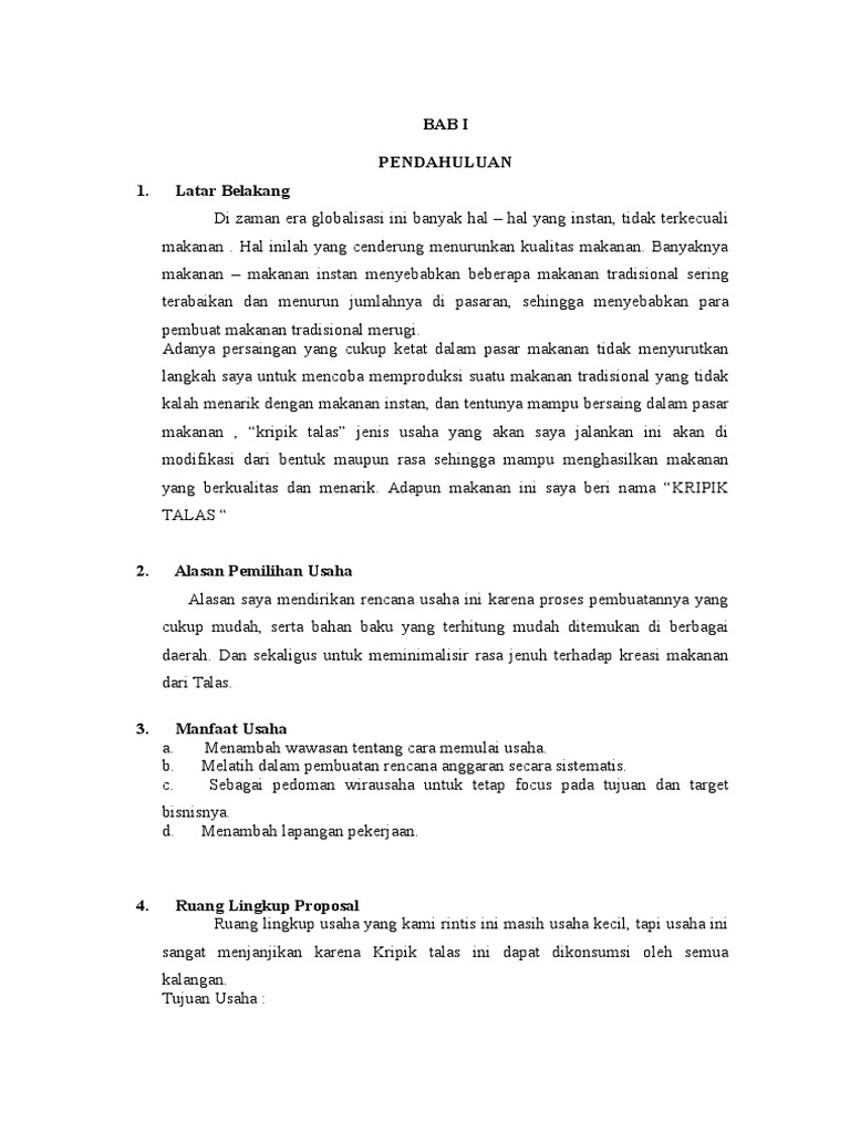 DOC) PROPOSAL RENCANA USAHA KERIPIK TALAS | Cahyo Kris - Academia.edu
