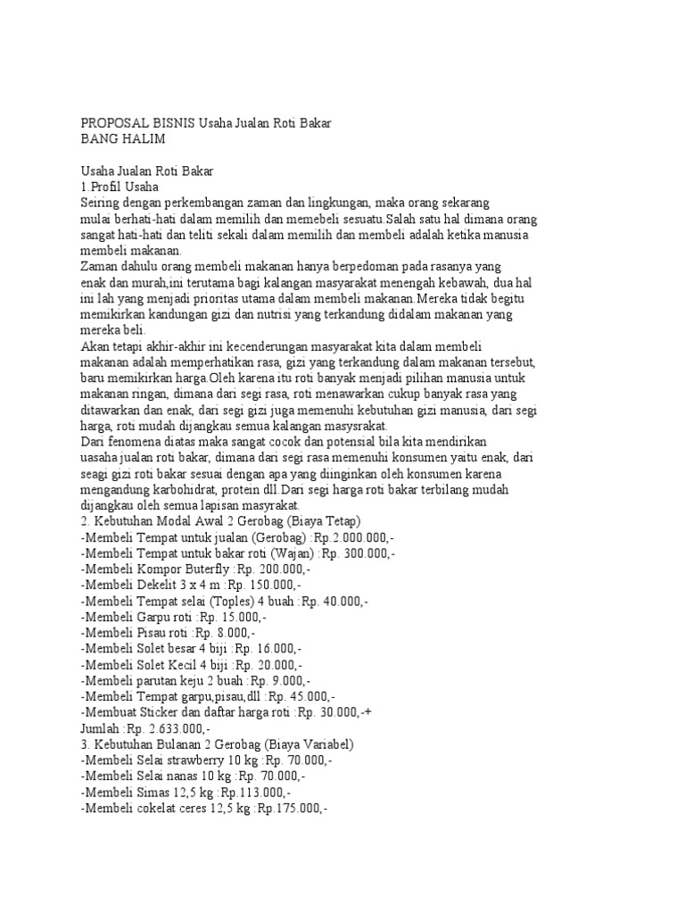 Contoh Proposal Usaha Roti Bakar - [DOCX Document]