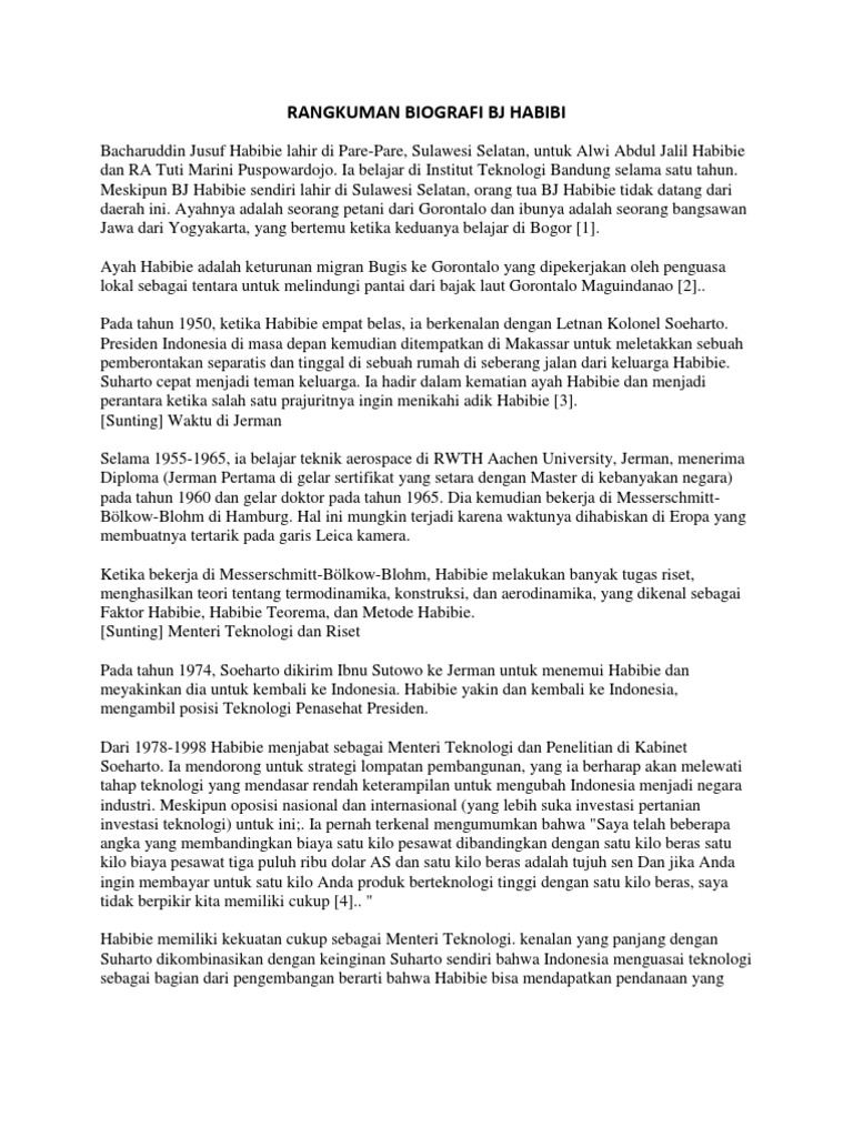ada yang sudah mengerjakan? mengenai teks biografi bj habibie kelas 10? - Brainly.co.id