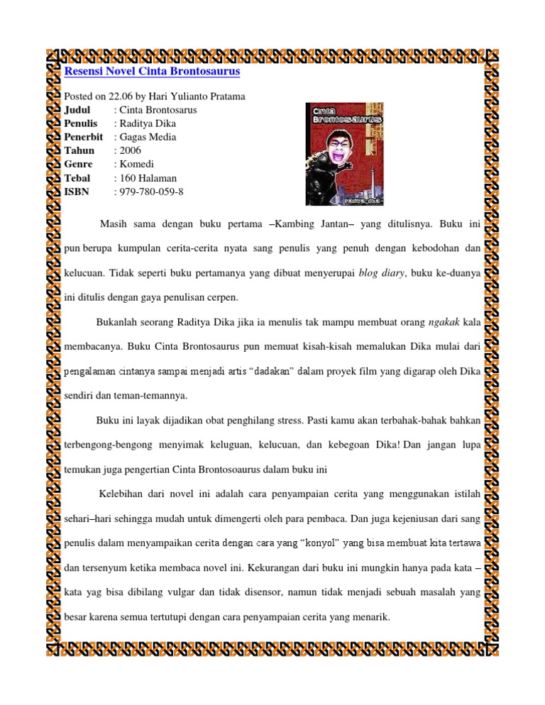 Resensi Novel Cinta Brontosaurus