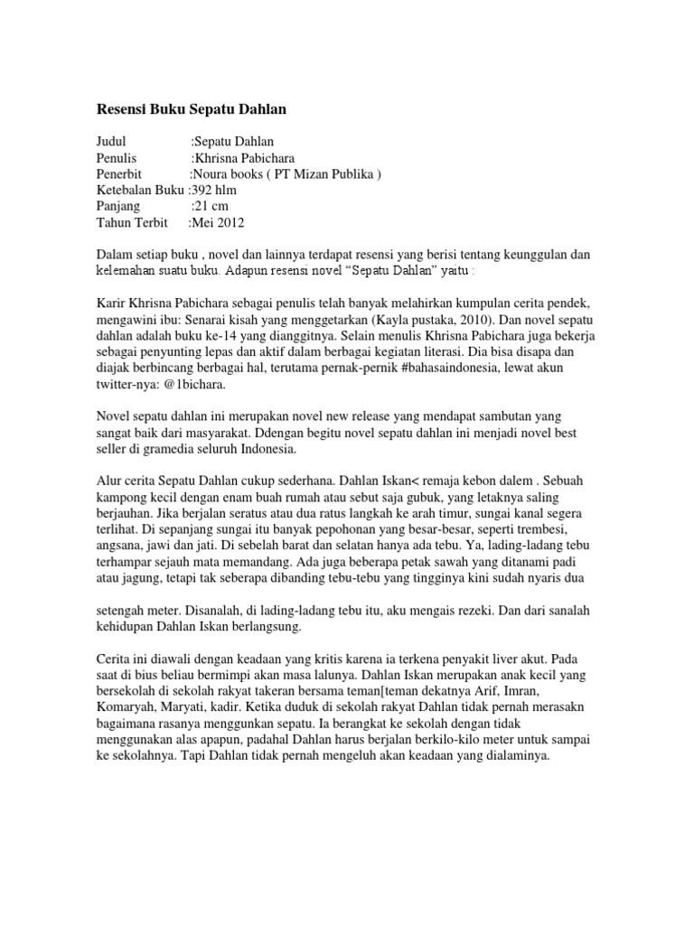Cermatilah resensi berikut! Judul buku : Sepatu Dahlan Pengarang : Khrisna - Brainly.co.id
