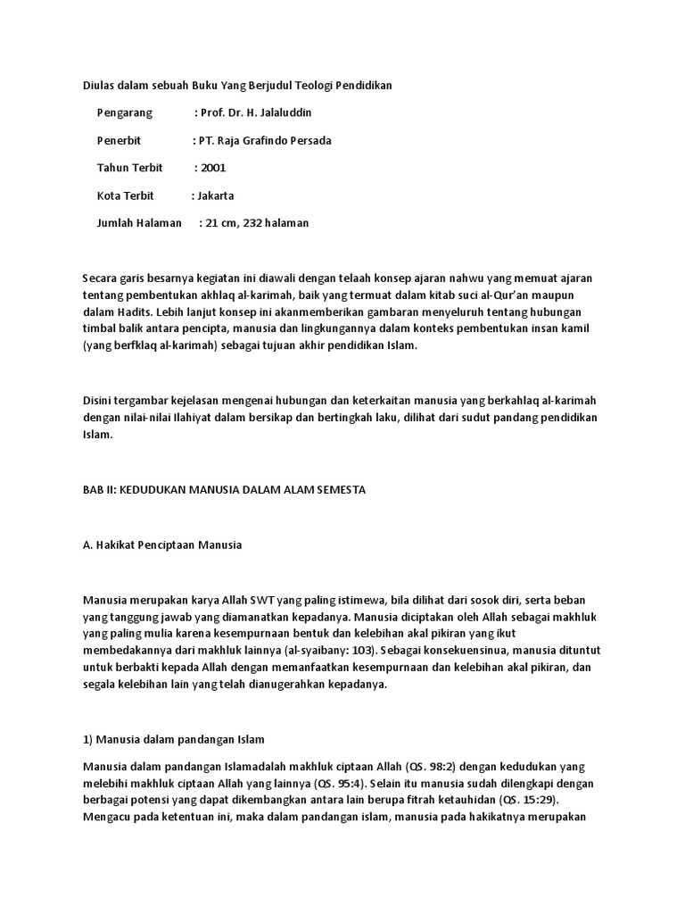 DOC) CONTOH RESENSI BUKU PENGANTAR FILSAFAT PENDIDIKAN | Gustiandra Lesmana - Academia.edu