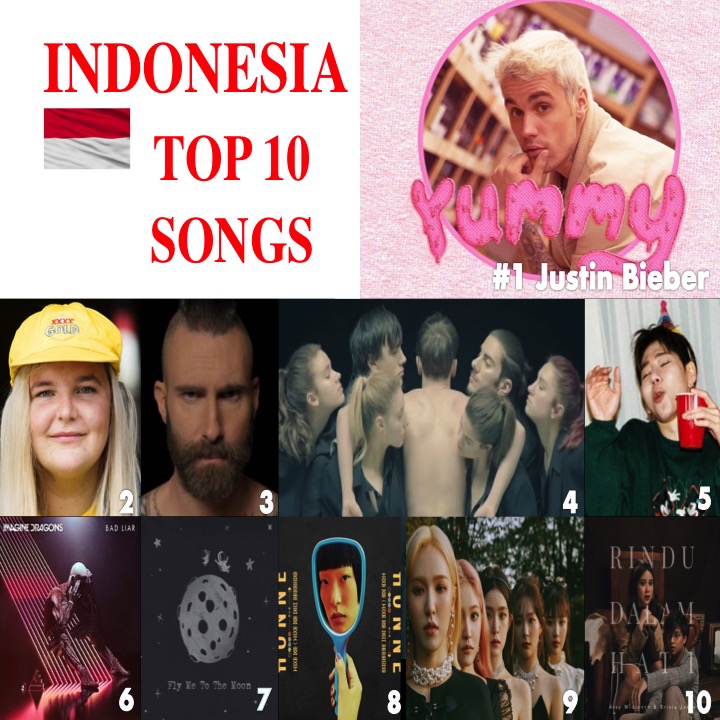 World Music Awards on Twitter: " SONGS IN INDONESIA 1Yummy @justinbieber 2DanceMonkey #tonesandi 3Memories #Maroon5 4BlackSwan #BTS 5AnySong #Zico 6BadLiar #ImagineDragons 7FlyMetotheMoon #TheMacaronsProject 8LocationUnknown …