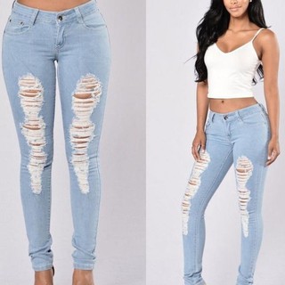 Sales Women Skinny Ripped Pants High Waist Stretch Jeans Slim Pencil Denim | Shopee Singapore
