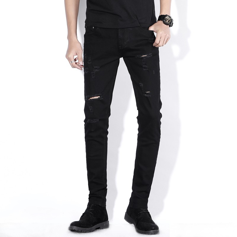 Song Trendy Men’s Jeans Biker Destroyed Frayed Slim Fit Denim Ripped Pants | Shopee Singapore