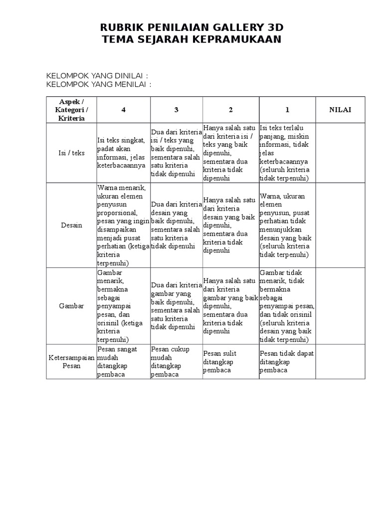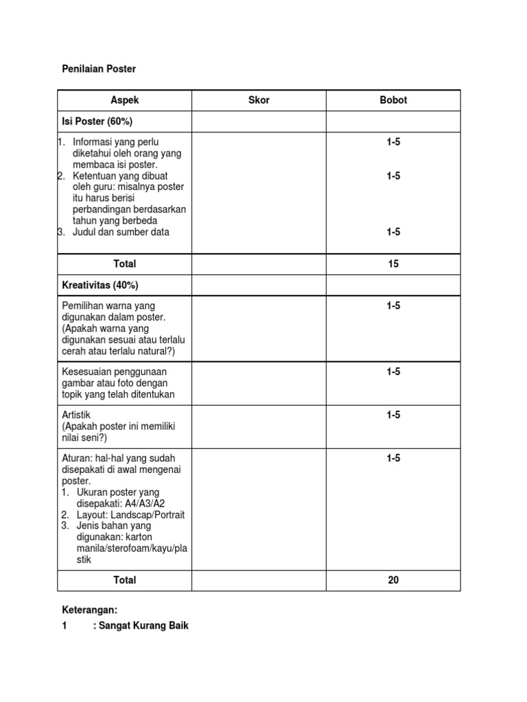 Contoh Rubrik Penilaian Poster | Poster, Penilaian, Rubrik