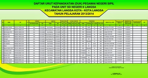 Contoh Format Daftar Urut Kepangkatan (DUK) PNS Terbaru - Info Pendidikan Terbaru