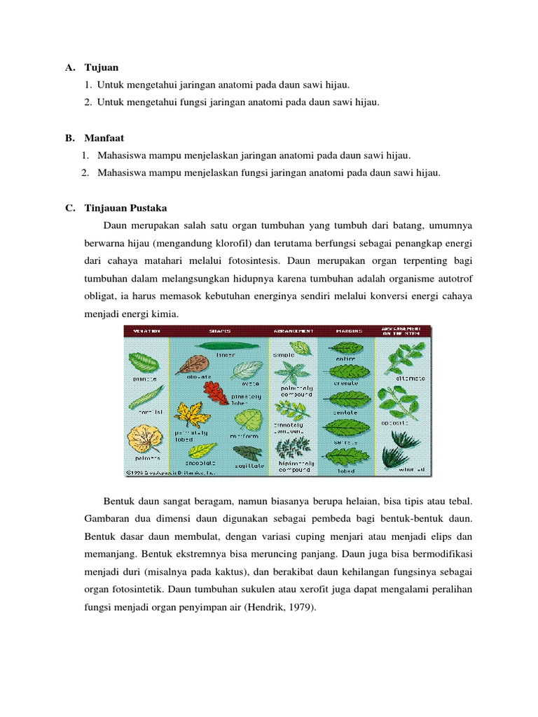 Jaringan Daun Tumbuhan, Pengertian Fungsi Penjelasan Contoh Pembahasn Soal Ujian,