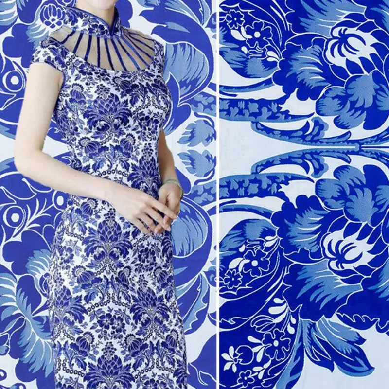 500 CM * 75 Cm Biru dan Putih Porselen Ditiru Silk Kain Pakaian Kostum Perapi Gaun Pengantin Kain Kain kualitas Tinggi|Kain| - AliExpress
