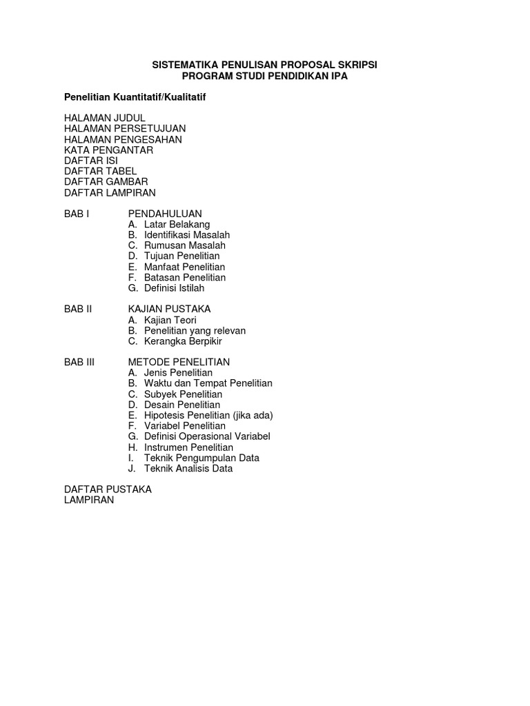 DOC) SISTEMATIKA PENULISAN PROPOSAL DAN SKRIPSI KUANTITATIF / KUALITATIF | kristian aw - Academia.edu