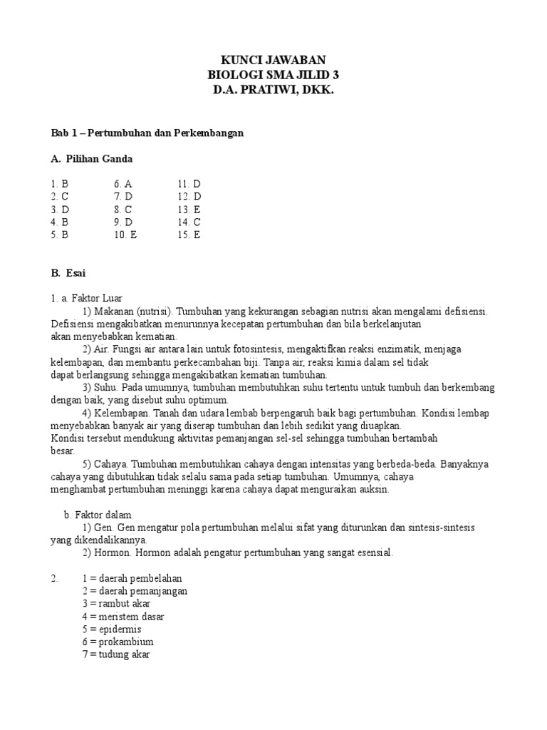 Kunci Jawaban Soal Biologi SMA - Pratiwi 3