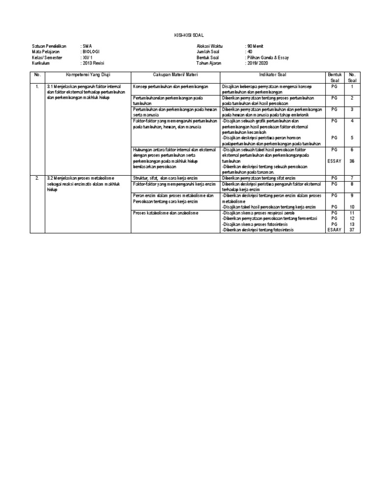 Contoh Kisi Kisi Soal Biologi - Guru Ilmu Sosial