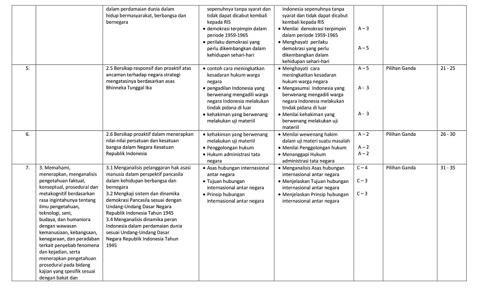 Kisi - Kisi Dan Soal, Kunci Jawaban Pkn