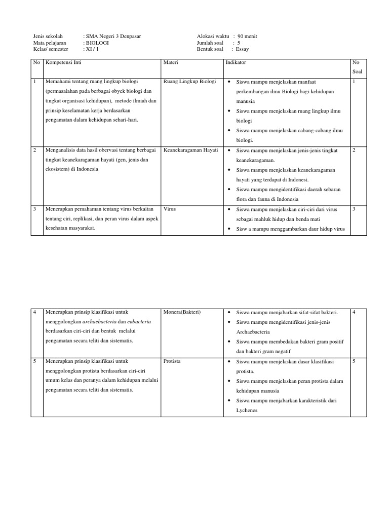 Ini Contoh Soal UTS Biologi Kelas X Semester I tentang Ruang …
