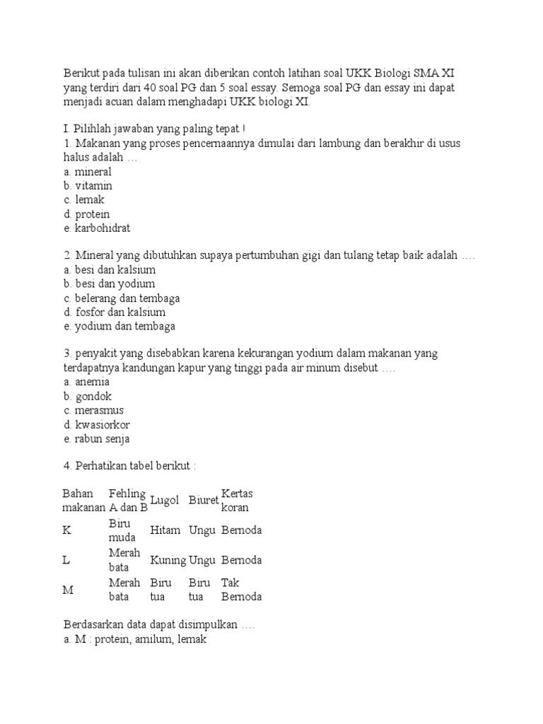 Lengkap - 20+ Contoh Soal Essay Biologi Kelas 11 SMA/MA dan Kunci …