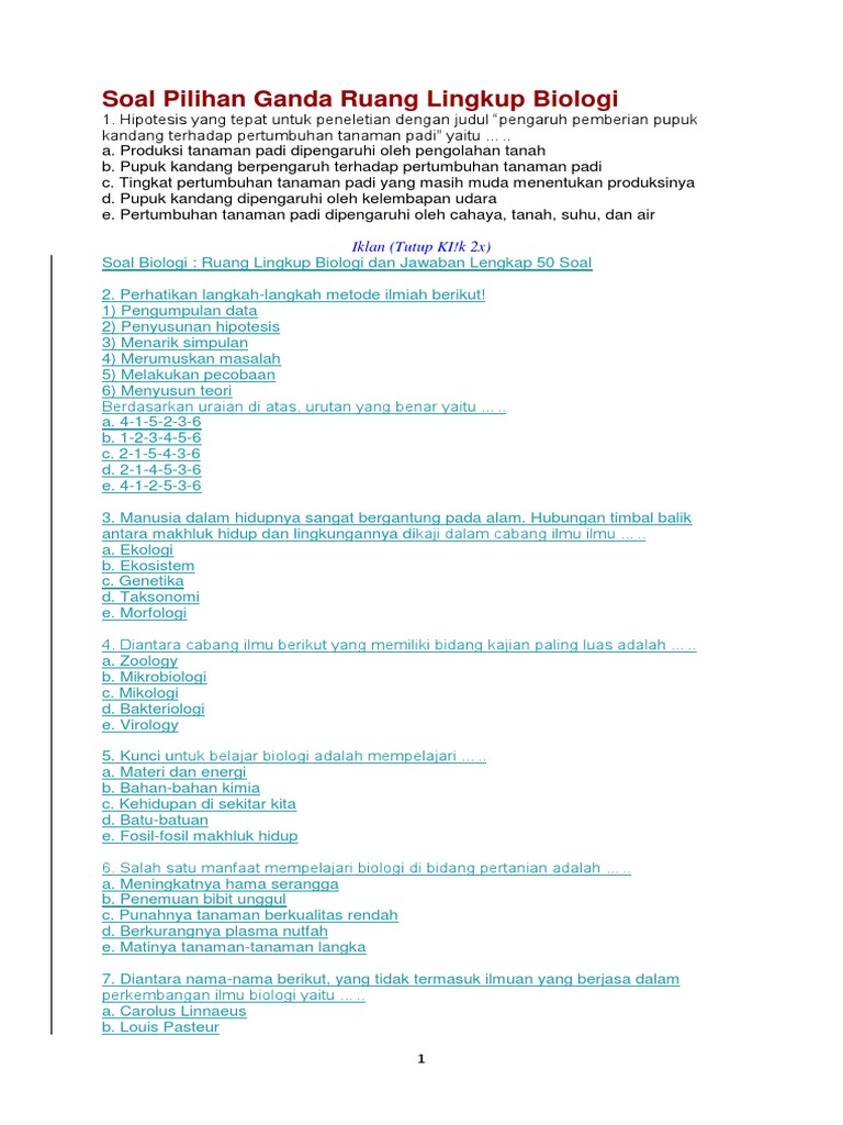 Contoh Soal Ruang Lingkup Biologi Pilihan Ganda | Biologi …