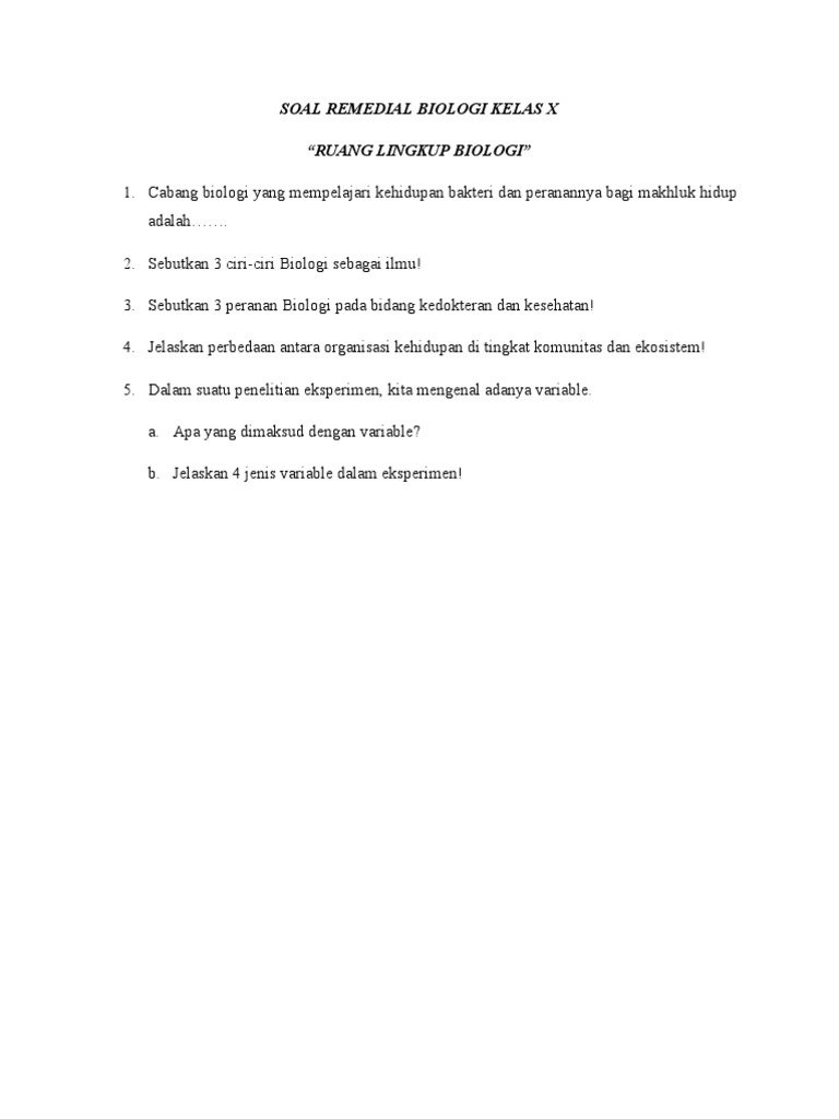 Contoh Soal Essay Biologi Tentang Ruang Lingkup Biologi …