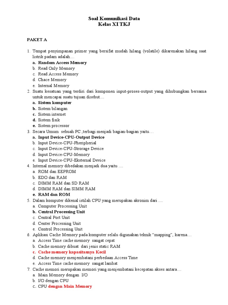 Soal Perakitan Komputer Pilihan Ganda Beserta Jawabannya - Guru …