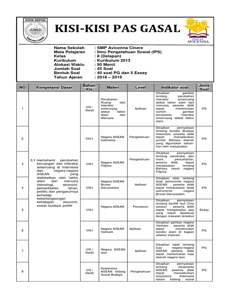 Kisi-kisi Soal Pas Ips Des 2018 Kelas 8