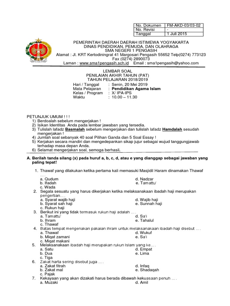 DOC) 70 contoh soal agama islam.docx | Rahma Niar - Academia.edu