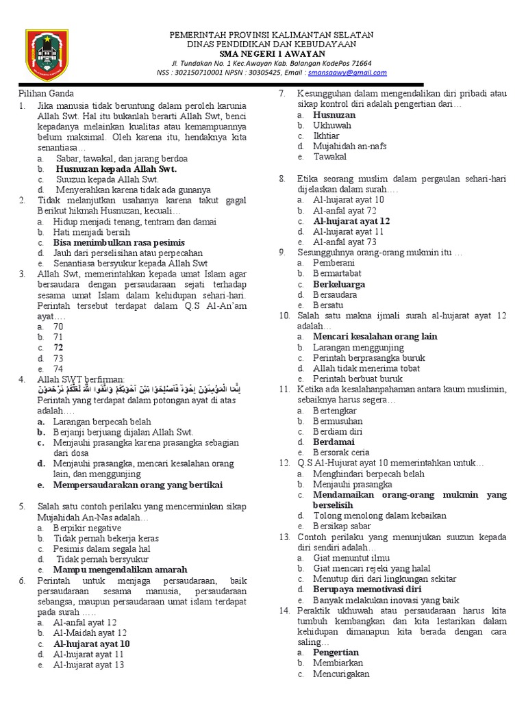 Contoh Soal dan Jawaban USBN PAI Kelas XII SMA/SMK Tahun 2019 …