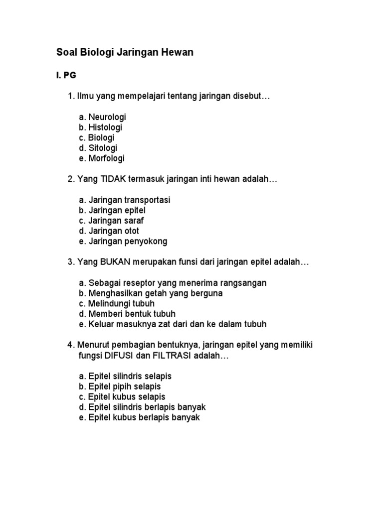 Soal Essay Tentang Jaringan Hewan