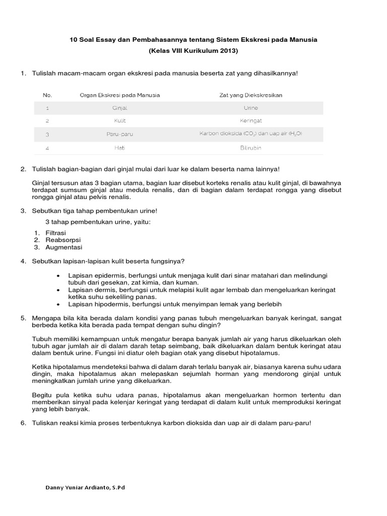 10 Soal Essay Dan Pembahasannya Tentang Sistem Ekskresi Pada Manusia
